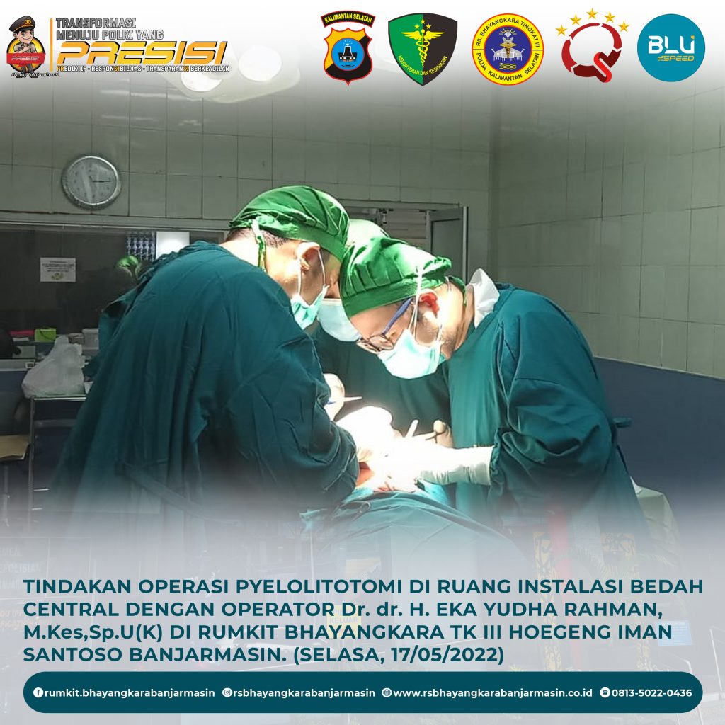 Instalasi Bedah Sentral – Tindakan Operasi di Instalasi Bedah Sentral Rumkit Bhayangkara Tk III Hoegeng Iman Santoso Banjarmasin. Kamis 17 Mei 2022