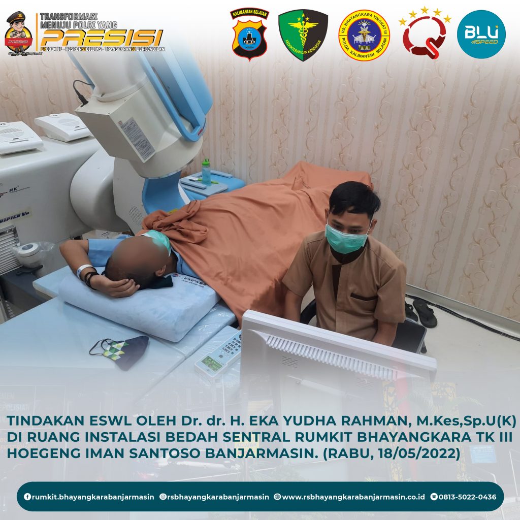 Instalasi Bedah Sentral – Tindakan ESWL oleh DR. dr. H. Eka Yudha Rahman, M. Kes., Sp.U(K) di ruang Instalasi Bedah Sentral Rumah Sakit Bhayangkara Tk III Hoegeng Iman Santoso Banjarmasin. rabu 18 Mei 2022
