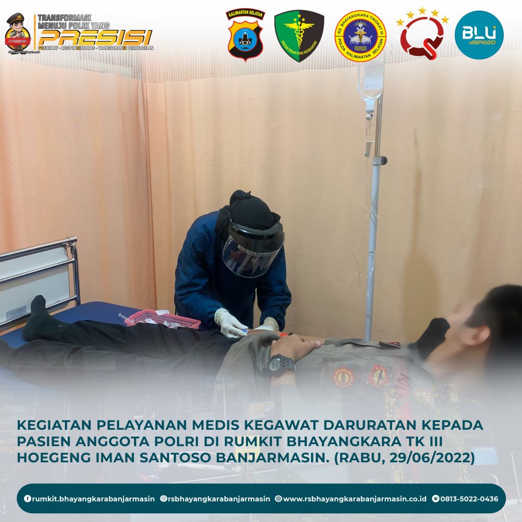 Pelayanan IGD – Kegiatan pelayanan medis kegawat daruratan kepada pasien anggota polri di Rumah Sakit Bhayangkara Tk III Hoegeng Iman Santoso Banjarmasin.