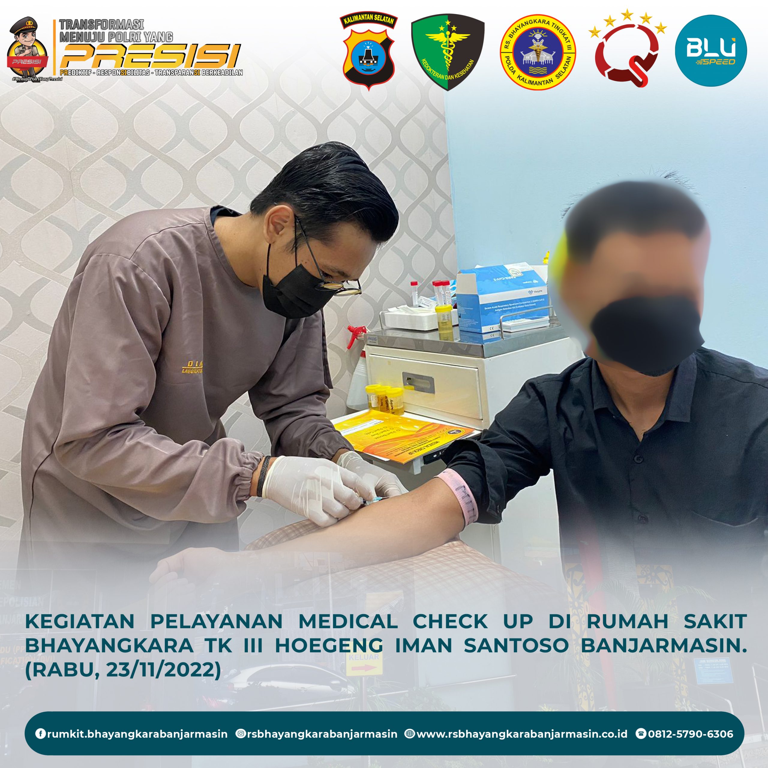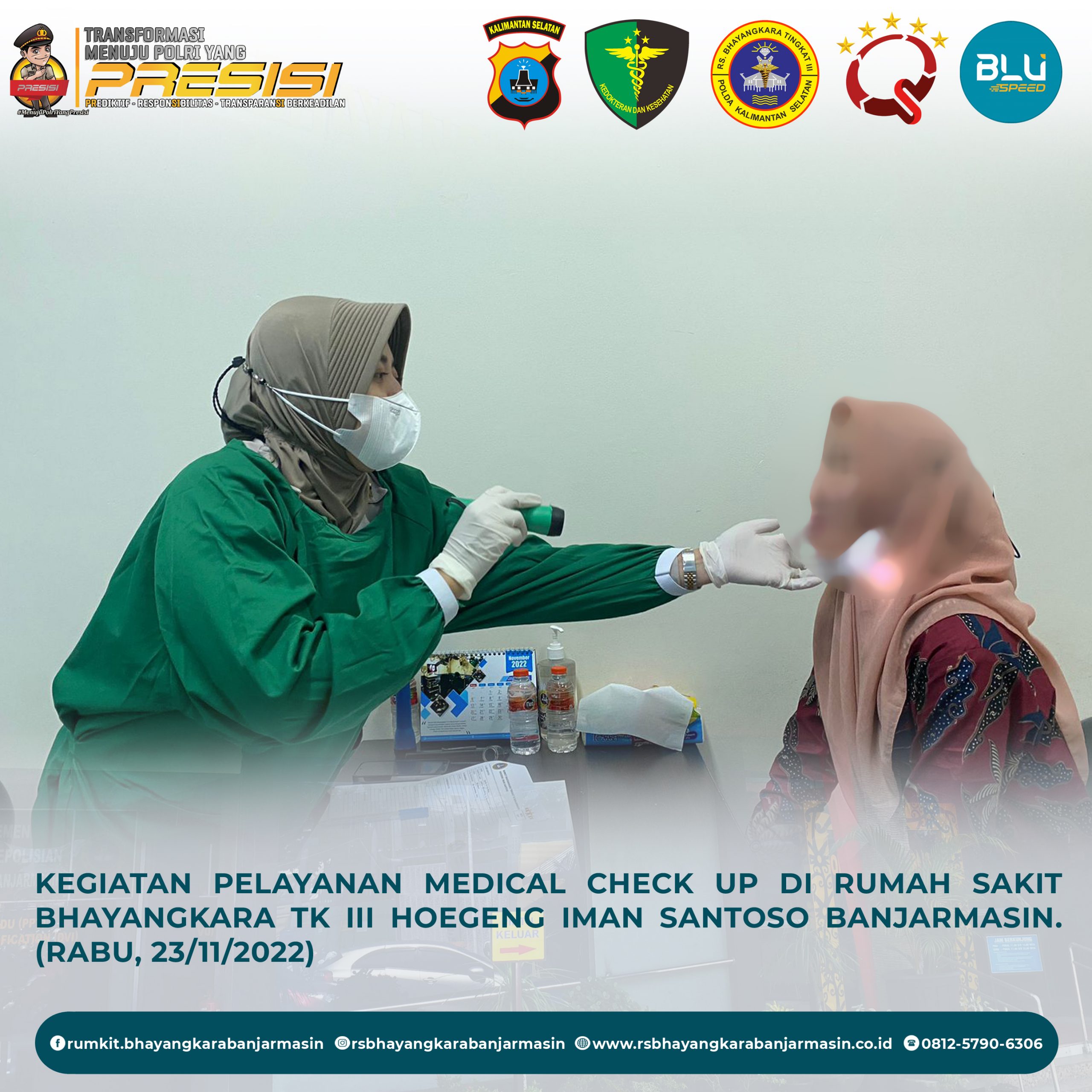 Giat Pelayanan MCU Rumkit Bhayangkara Tk III Banjarmasin [23/11/2022] November 24, 2022 Admin ITBeritaKesehatan Medical Check Up – Giat pelayanan medical check up di Rumah Sakit Bhayangkara Tk III Hoegeng Iman Santoso Banjarmasin.