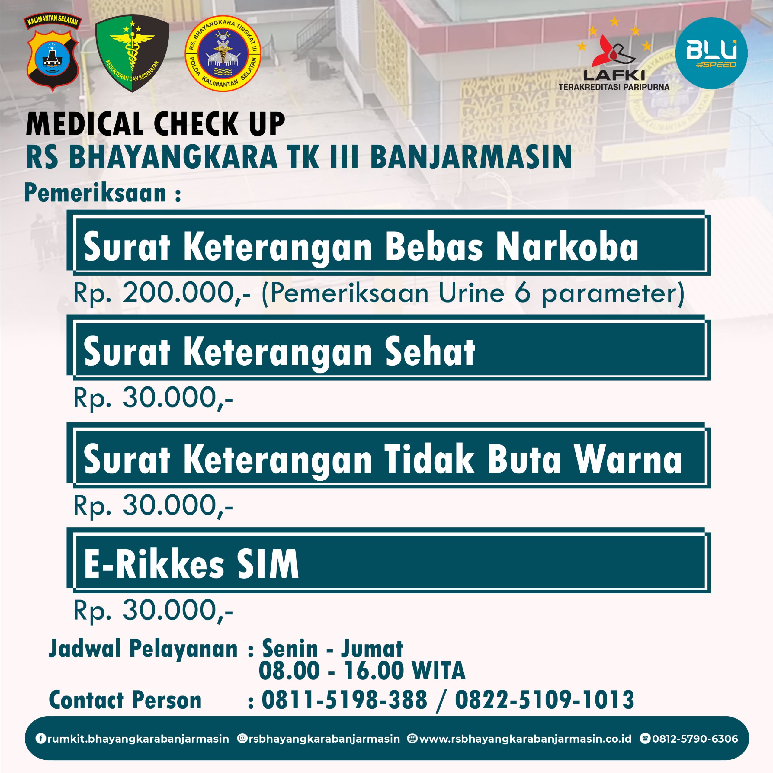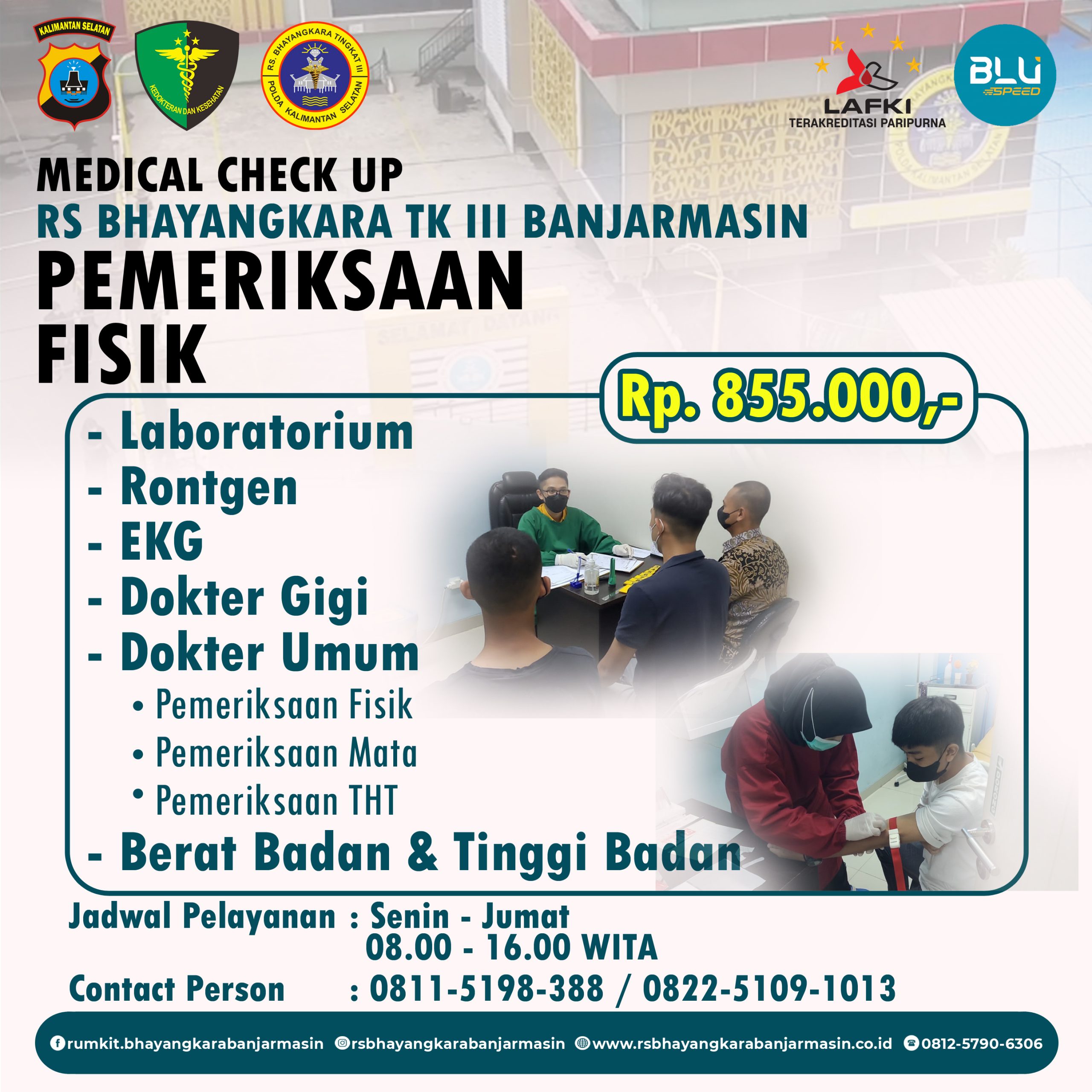 Tarif Pelayanan Medical Check Up RS Bhayangkara Tk III Banjarmasin February 7, 2023February 10, 2023 Admin ITBeritaKesehatan Medical Check Up – Layanan pemeriksaan MCU RS Bhayangkara Tk III Banjarmasin