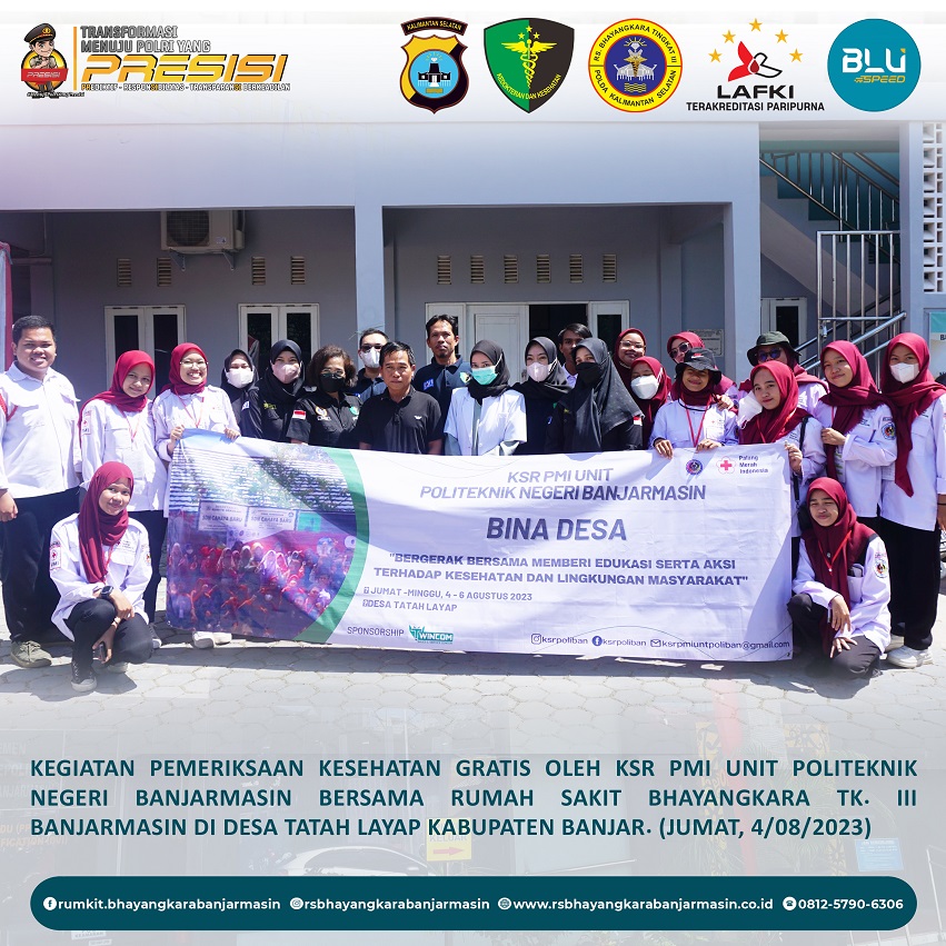 Baktikes – Kegiatan Pengobatan Gratis oleh Rumkit Bhayangkara Tk III Banjarmasin bersama KSR PMI Unit Politeknik Negeri Banjarmasin di Desa Tatah Layap Kabupaten Banjar.