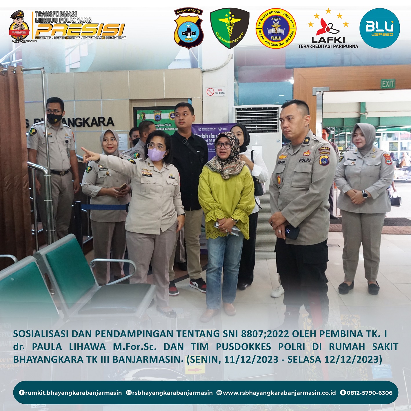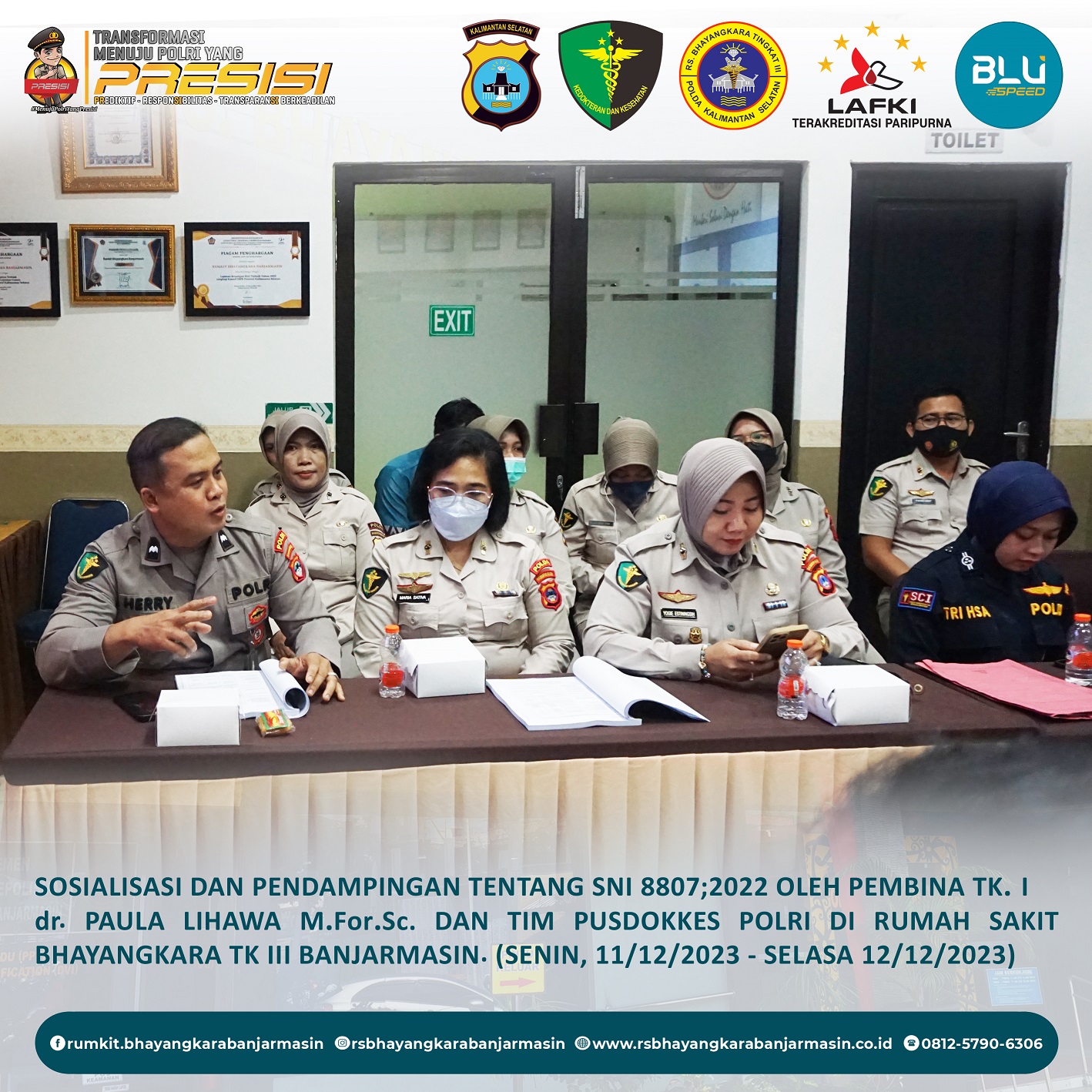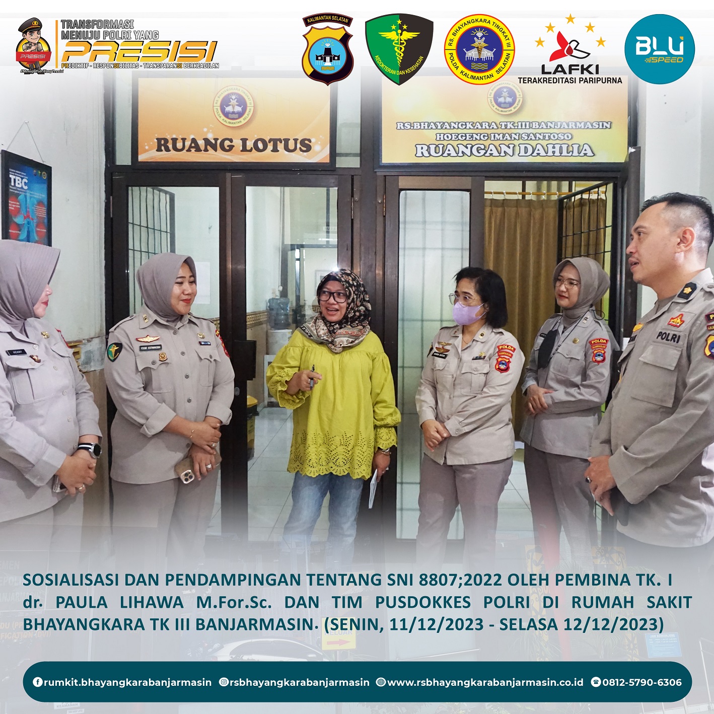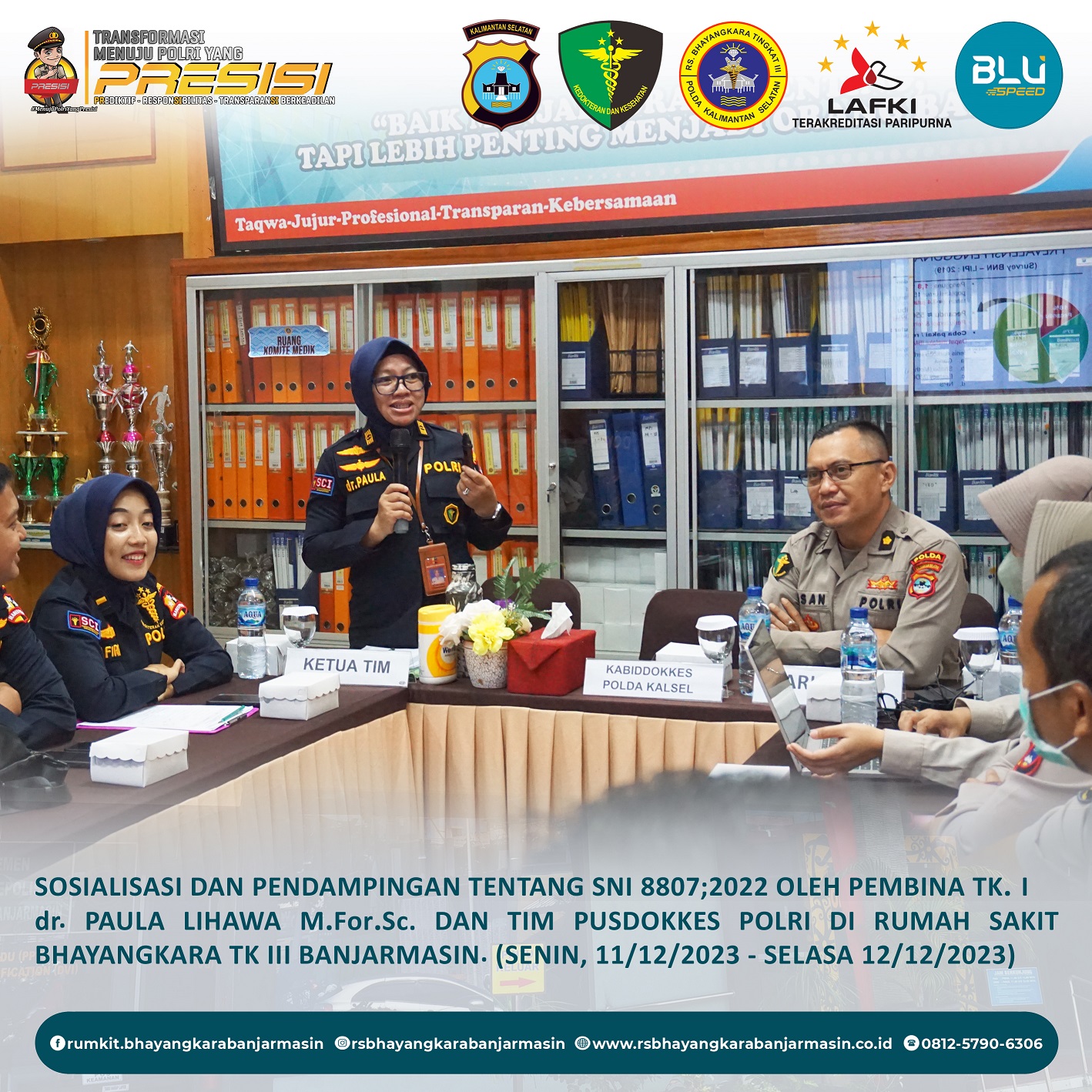 SNI 8807;2022 – Kunjungan Tim Pusdokkes Polri yang diketuai Pembina Tk I dr. Paula Lihawa M.For.Sc. ke Rumah Sakit Bhayangkara Banjarmasin dalam Rangka Sosialisasi dan Pendampingan SNI 8807;2022.