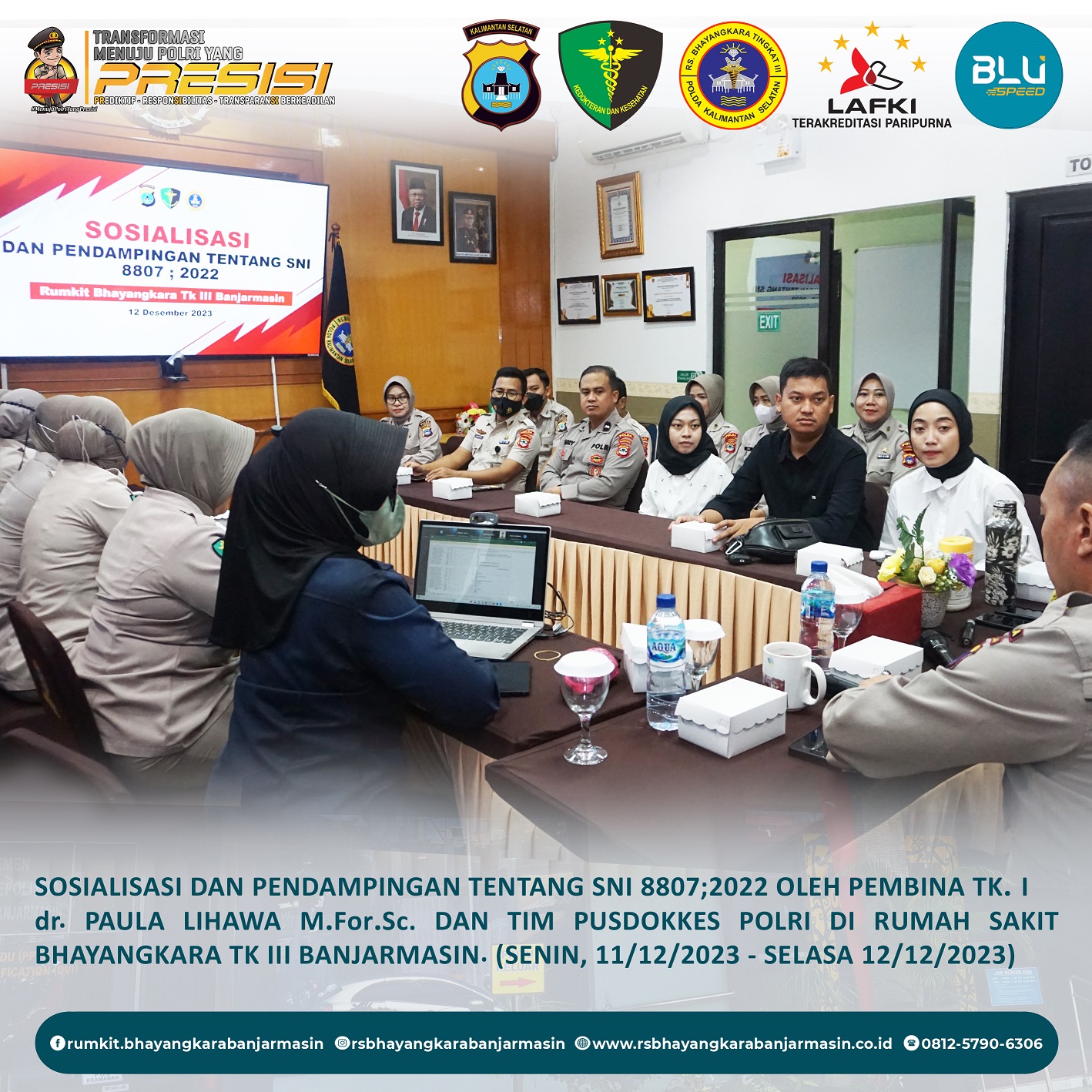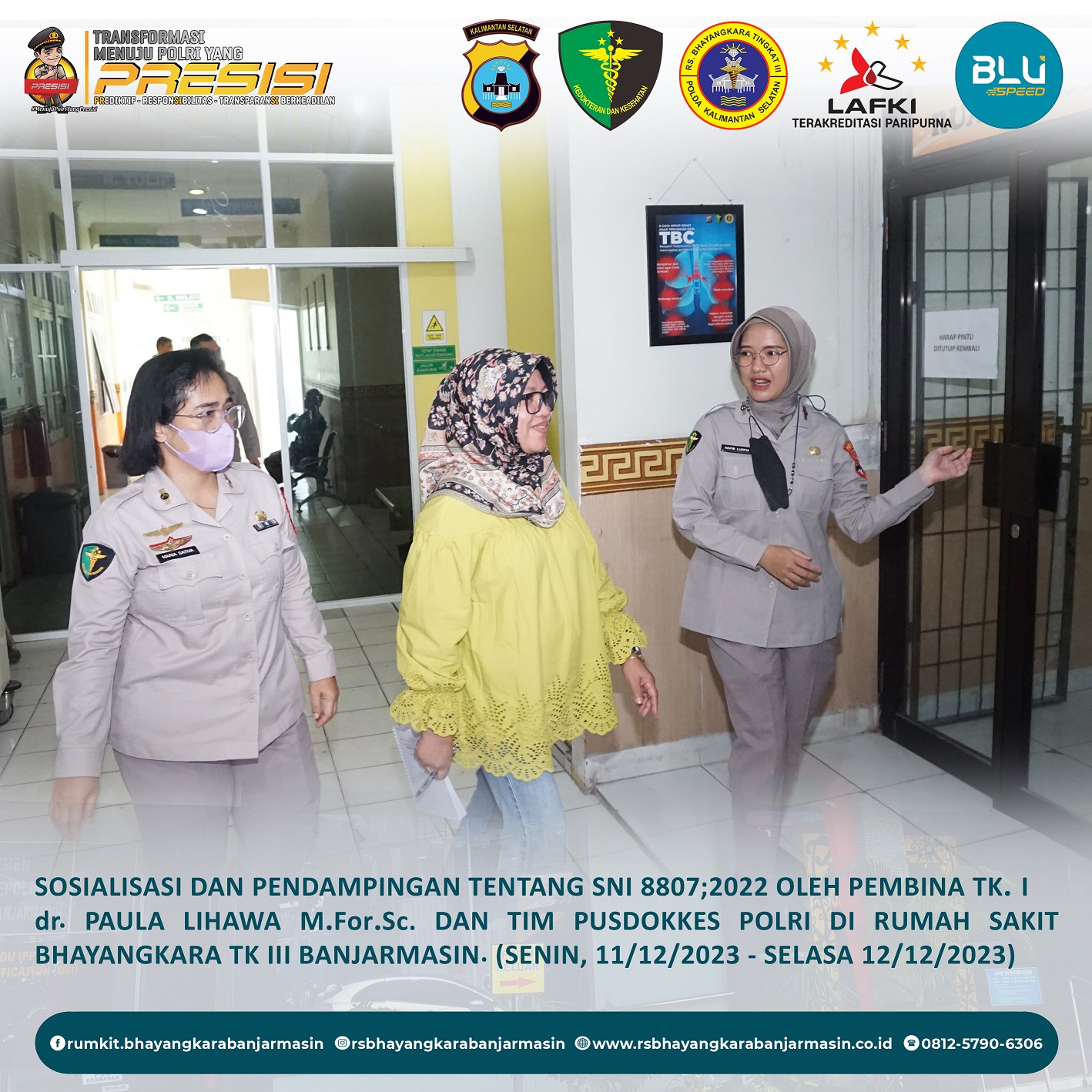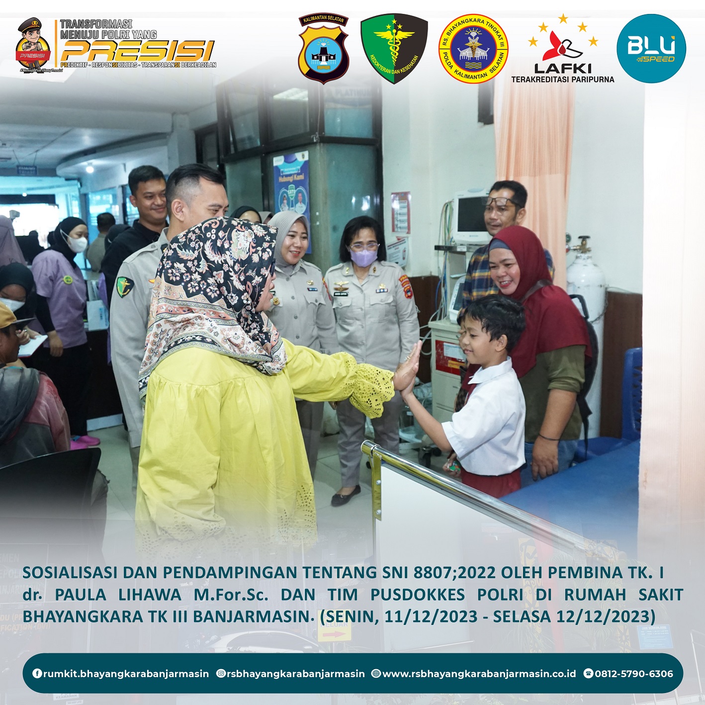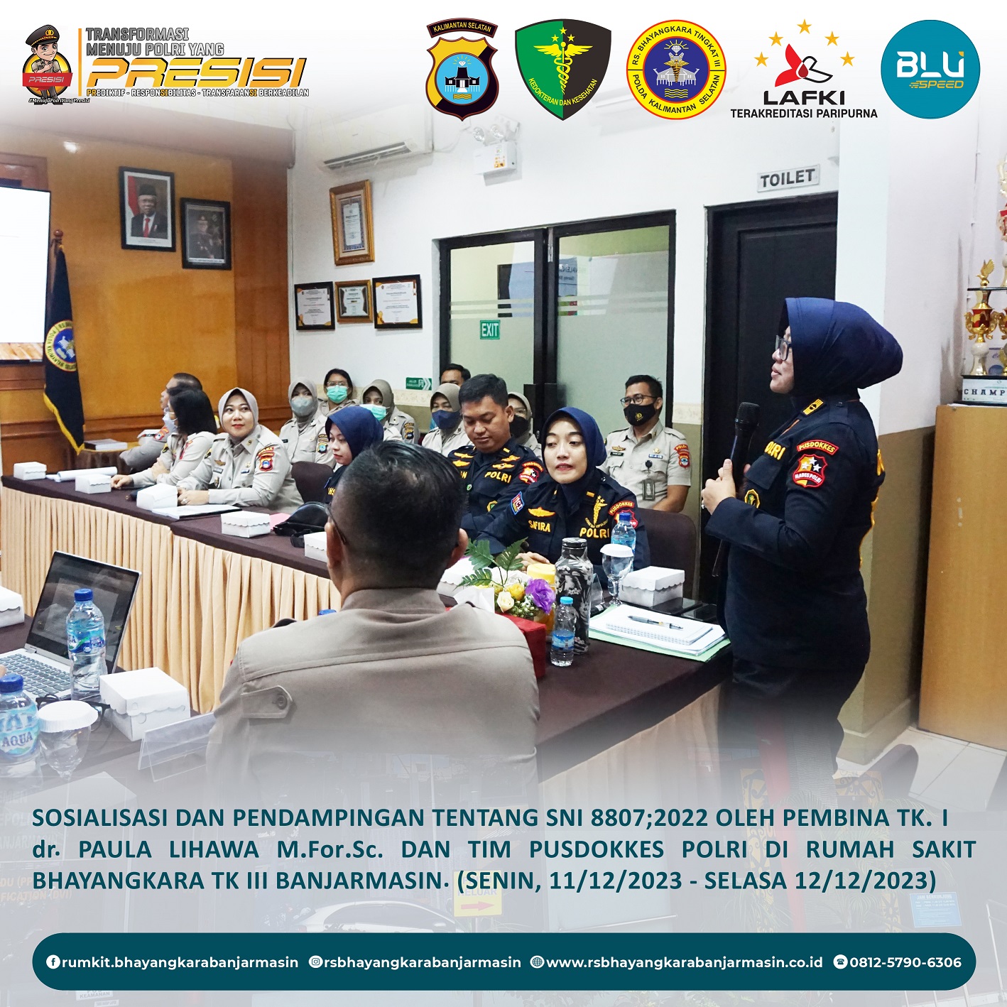 SNI 8807;2022 – Kunjungan Tim Pusdokkes Polri yang diketuai Pembina Tk I dr. Paula Lihawa M.For.Sc. ke Rumah Sakit Bhayangkara Banjarmasin dalam Rangka Sosialisasi dan Pendampingan SNI 8807;2022.
