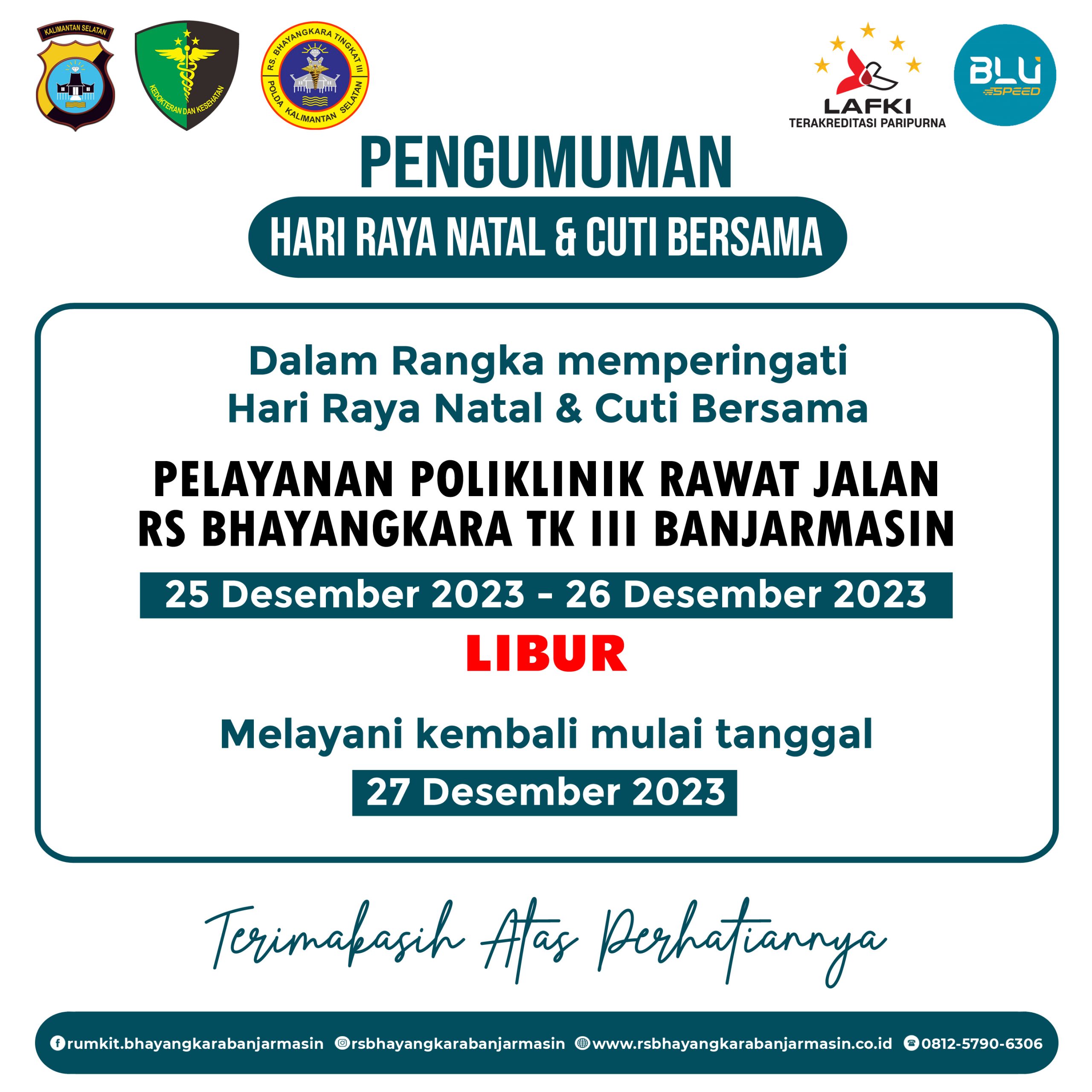 Pengumuman Jadwal pelayanan Poliklinik Rawat jalan