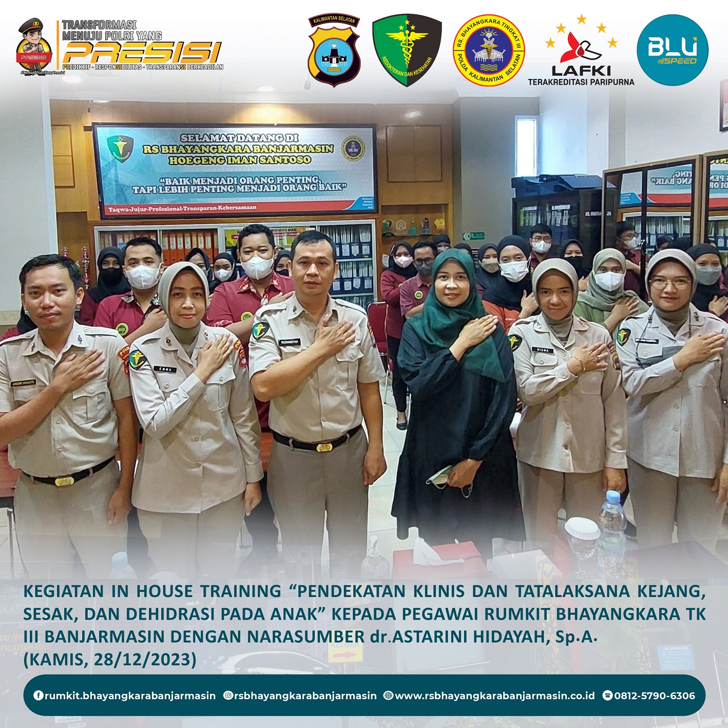 In House Training Pendekatan klinis dan tatalaksana Kejang, Sesak, dan Dehidrasi pada Anak kepada pegawai Rumkit Bhayangkara TK III Banjarmasin