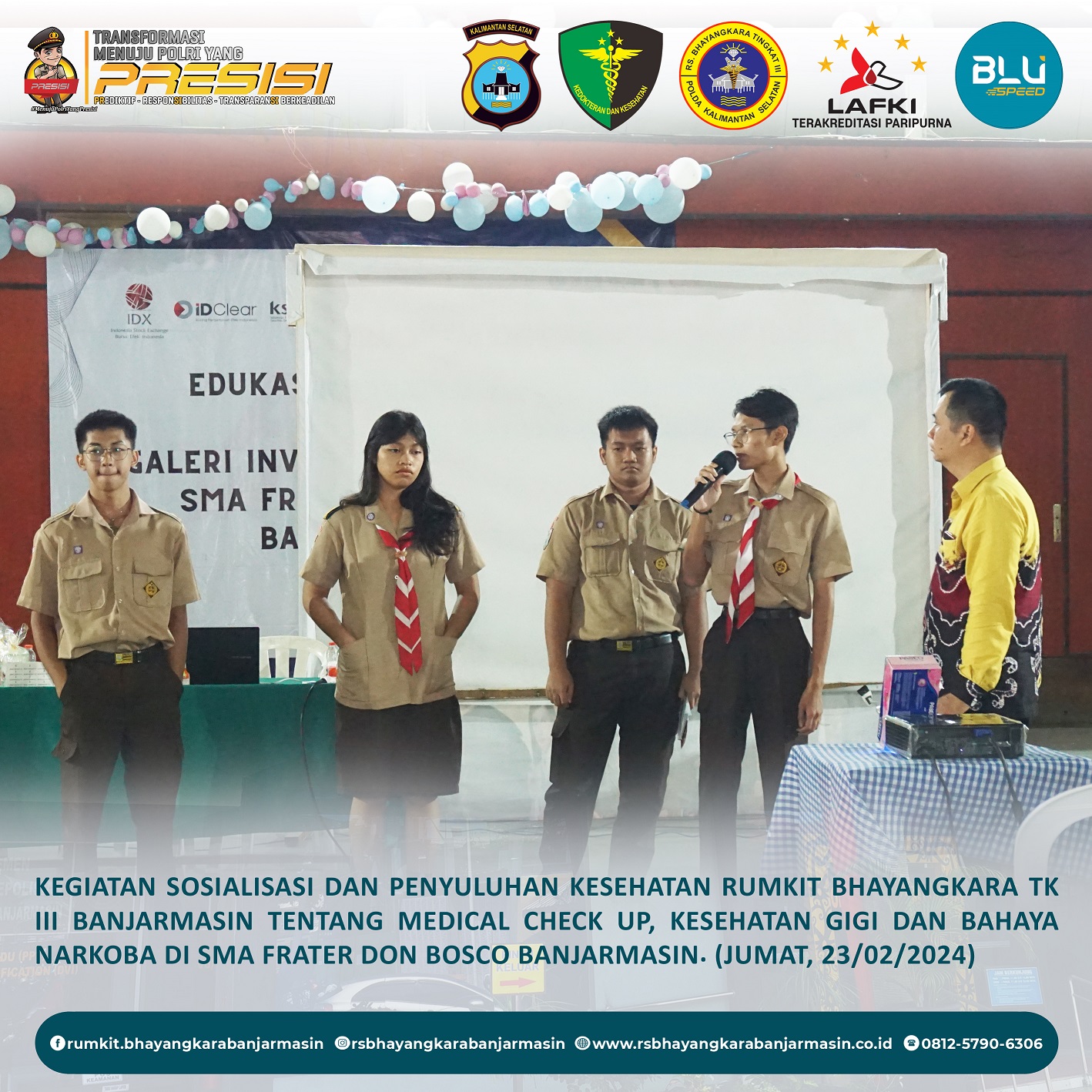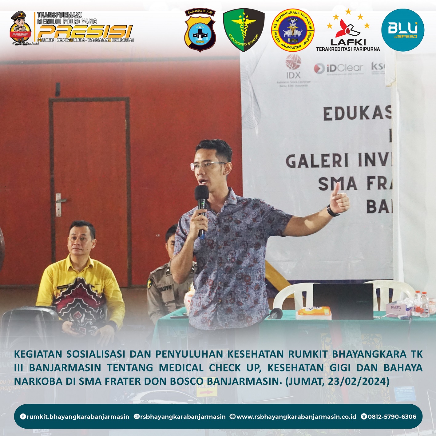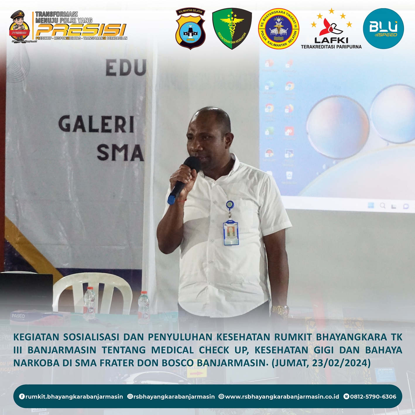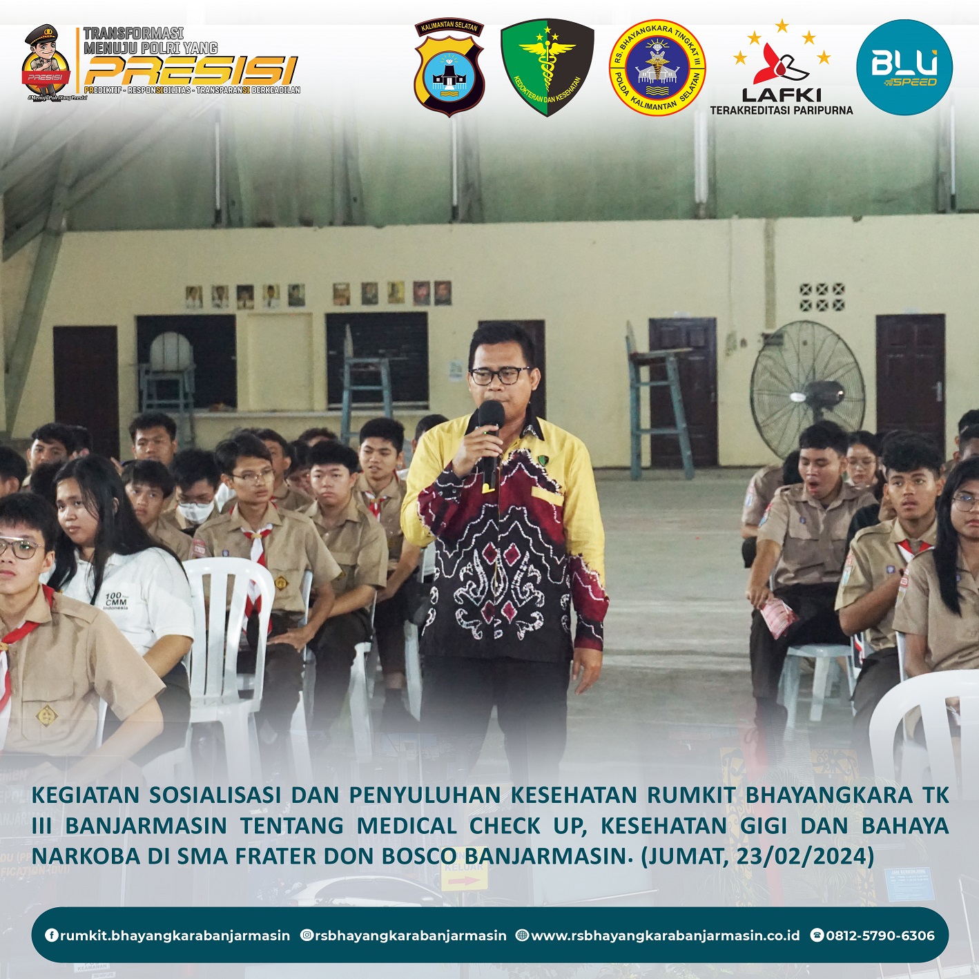 Promosi Kesehatan – Giat Sosialisasi dan Penyuluhan Kesehatan Oleh Rumah Sakit Bhayangkara Tk III Banjarmasin di SMA Frater Don Bosco Banjarmasin.